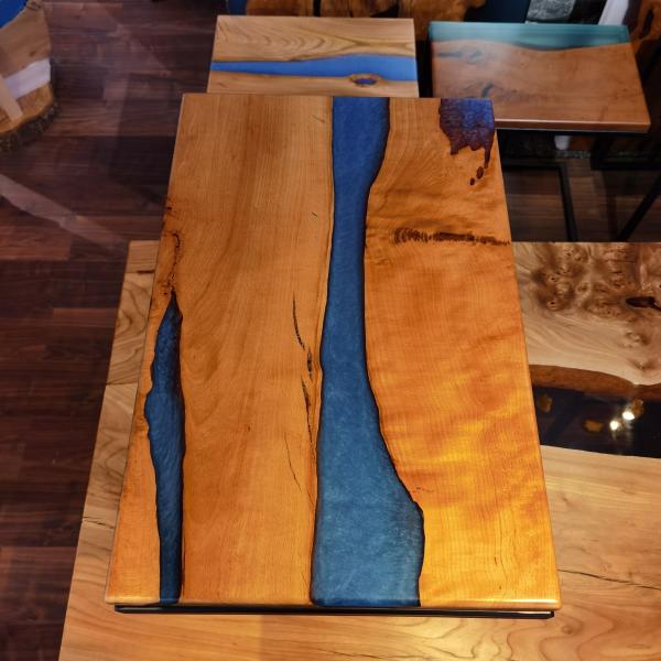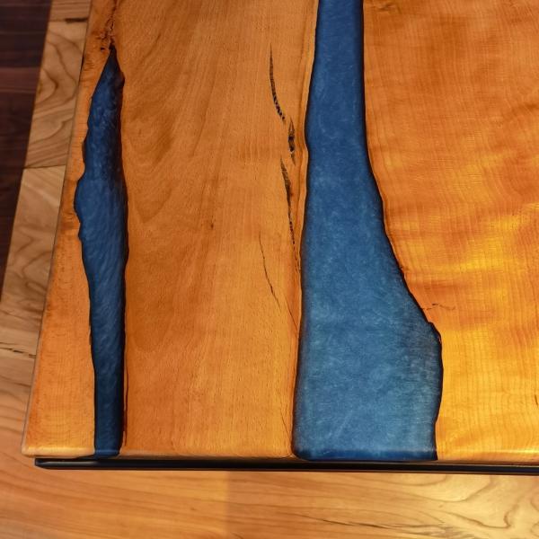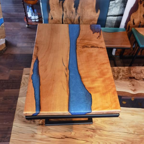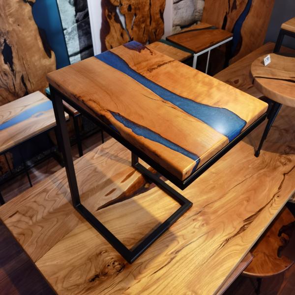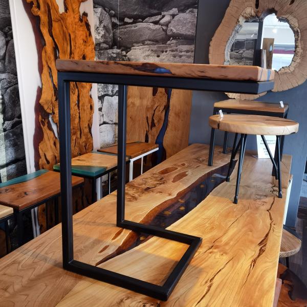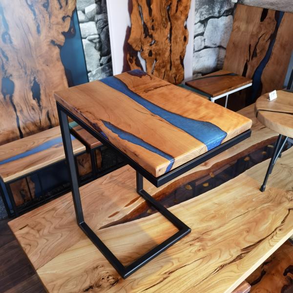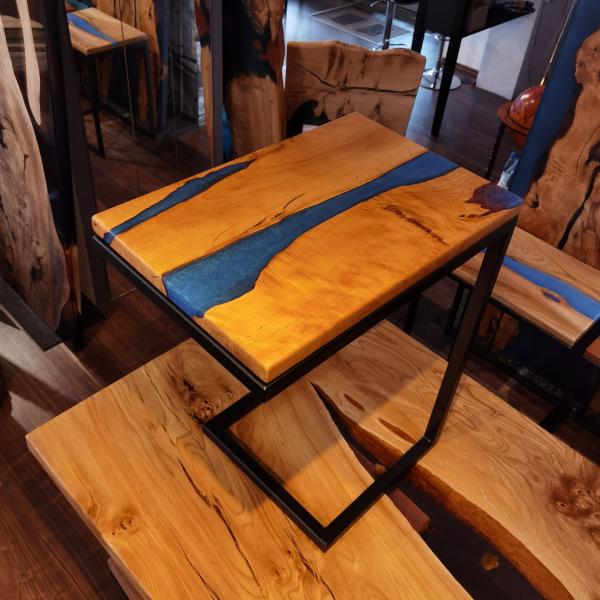 Preview: Beistelltisch aus Holz und Kunstharz auf einem edlen Metallgestell