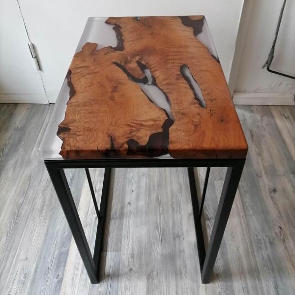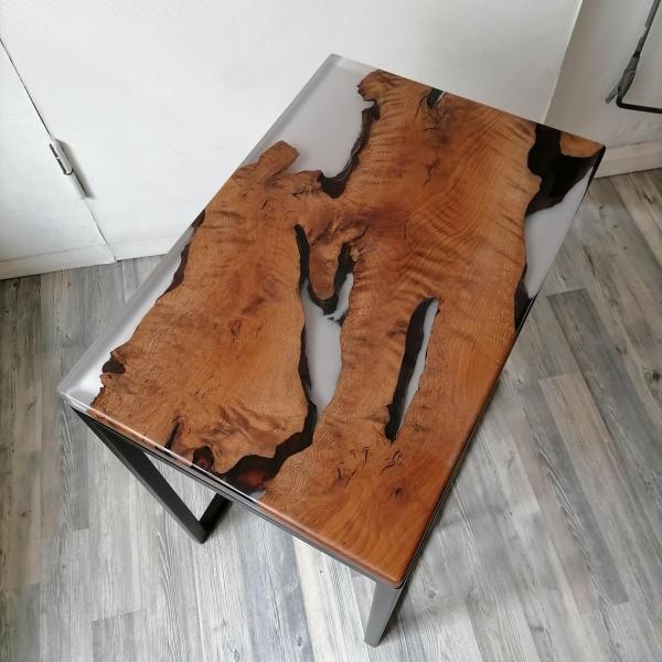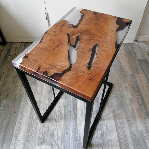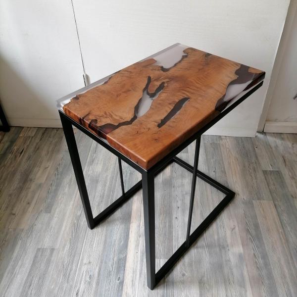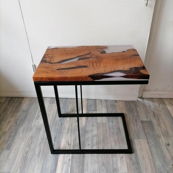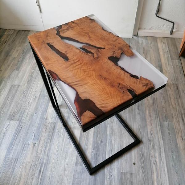 Preview: Beistelltisch aus Massivholz und Kunstharz auf einem edlen Metallgestell
