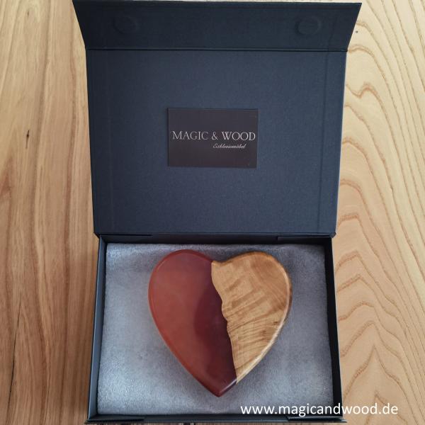 Preview: Ein Herz aus Massivholz mit Kunstharz