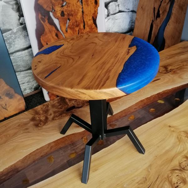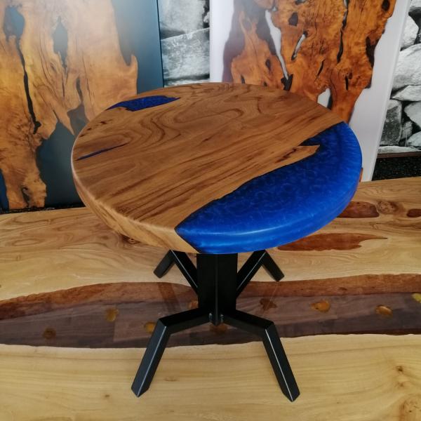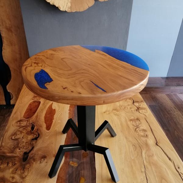 Ein runder Kaffeetisch aus Massivholz mit Kunstharz